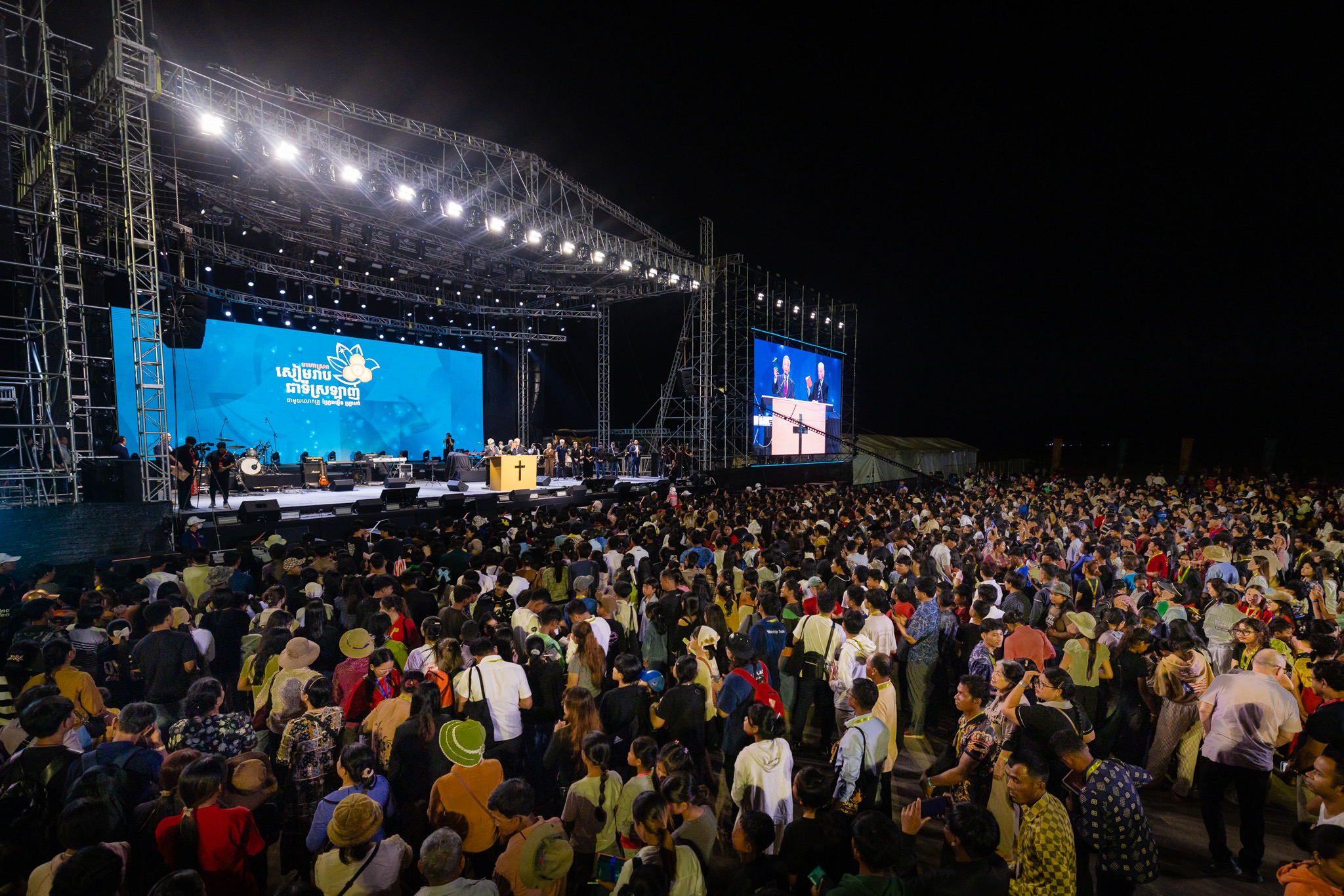 Khi mặt trời lặn trên khu sân bay Siem Reap cũ, hơn 12.000 người nhảy lên và hát ngợi khen “Preah Yesoo” – Chúa Jêsus – lặp đi lặp lại, một điệp khúc đơn giản với một sứ điệp đơn giản.