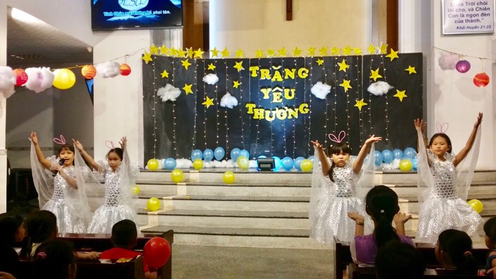 * Chiều 1/10, tại Giáo hội Tin Lành Trưởng lão Liên hiệp Việt Nam – Chi hội Giê-ru-sa-lem (TP.HCM), cũng diễn ra chương trình Vui Trung Thu với chủ đề “Sáng tạo diệu kỳ” với hơn 40 em tham dự.