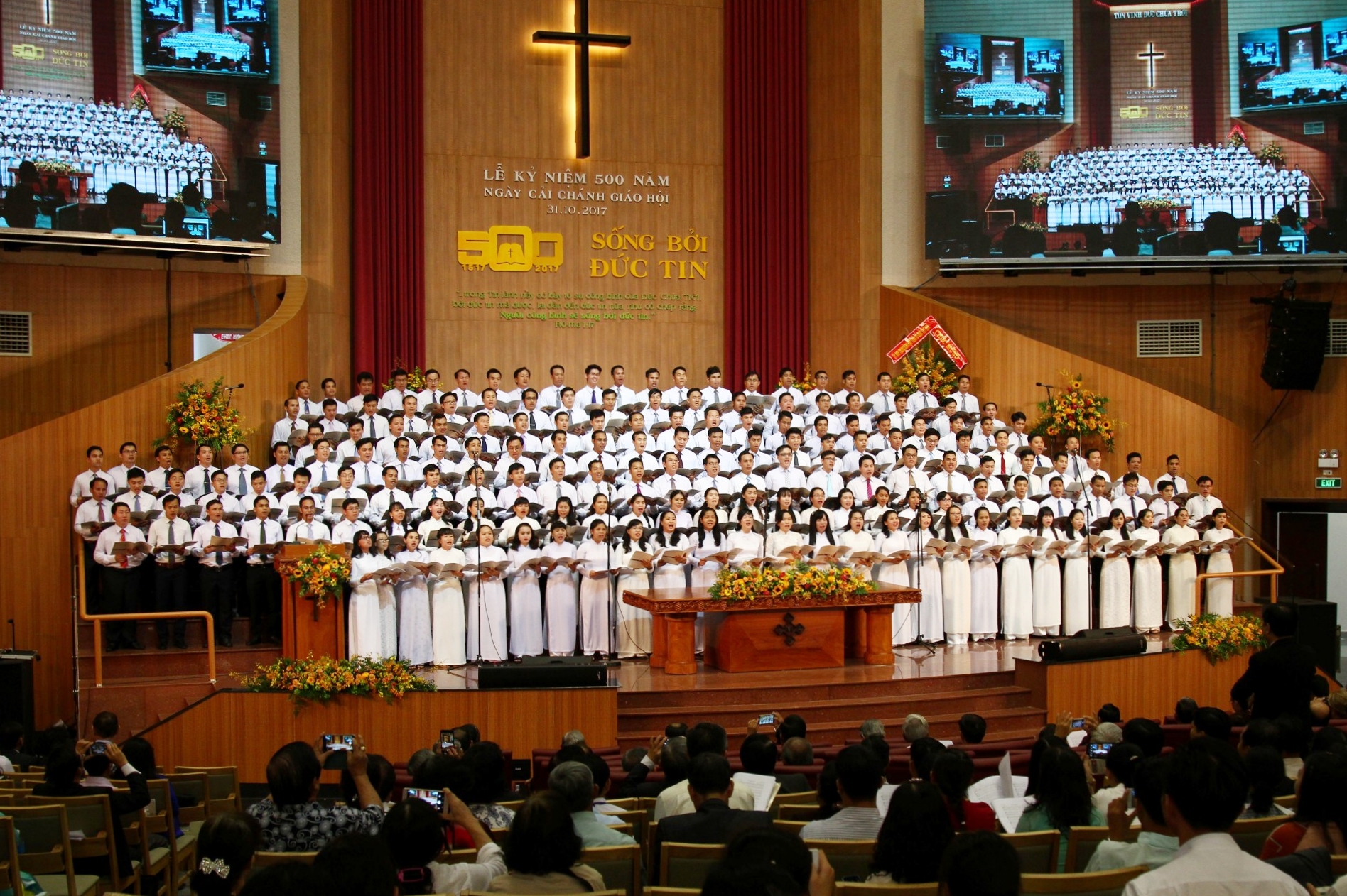 Ca đoàn Sinh viên Tin Lành tôn vinh Chúa trong Lễ kỷ niệm 500 Cải chánh Giáo hội tại Viện Thần học – HTTL Việt Nam (Q.2, TP.HCM) năm 2017. Ảnh: httlvn.org