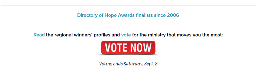 Sự bình chọn của công chúng khắp nơi sẽ xác định đơn vị chiến thắng chung cuộc cho giải thưởng, vì vậy Trung tâm Tin Lành giải cứu cai nghiện Aquila rất mong sự đồng công, tham gia và chia sẻ của tất cả quý vị, vì công việc Chúa chung trên đất nước chúng ta.