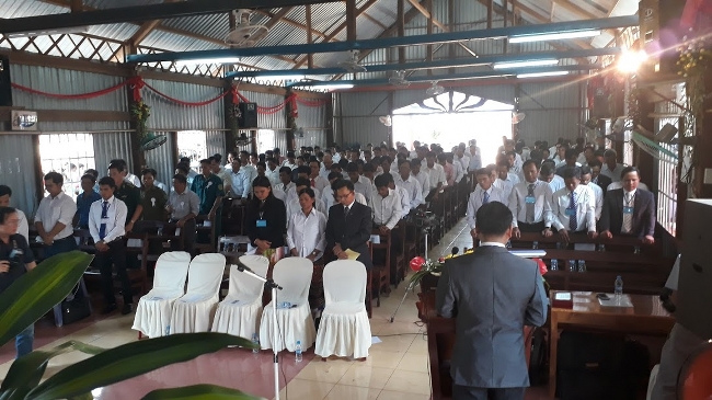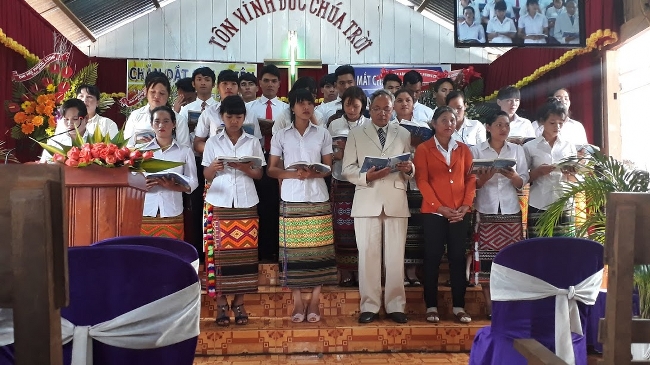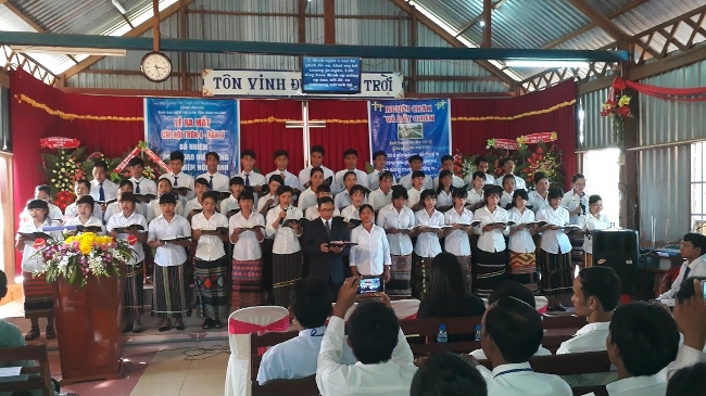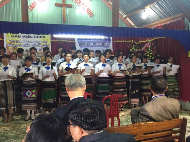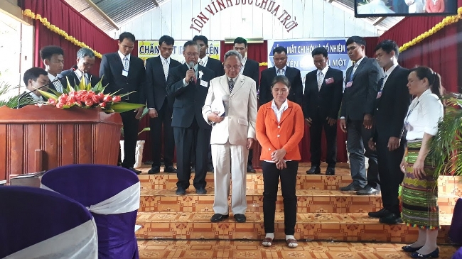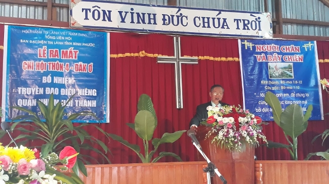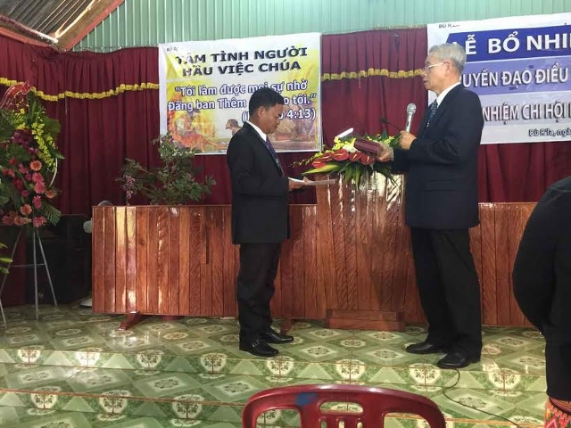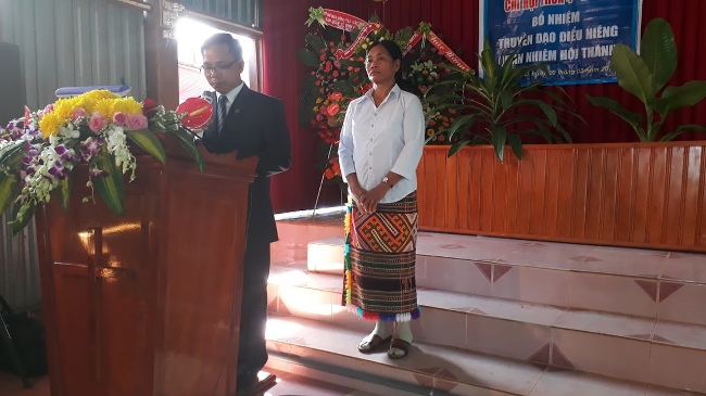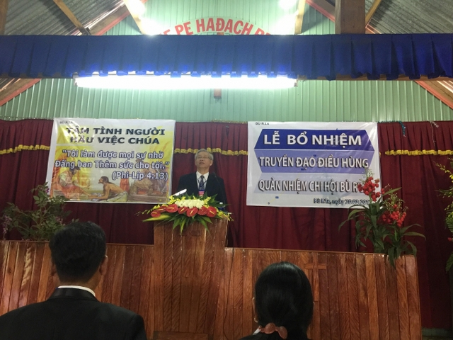 Tại nhà thờ Tin Lành Bù R’la, Lễ Bổ nhiệm Truyền đạo Điểu Hùng làm Quản nhiệm Chi Hội Bù R’la. MS Trần Thanh Dũng – Ủy viên TLH – chủ lễ và thực hiện nghi thức bổ nhiệm.