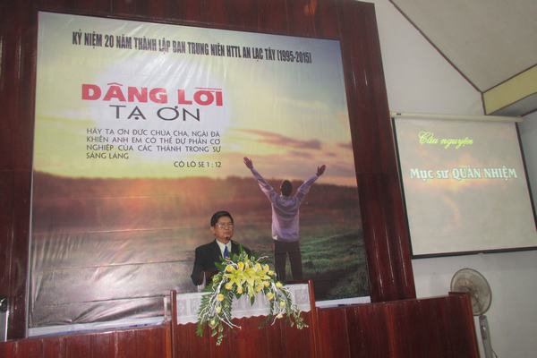 Mục sư Quản nhiệm cầu nguyện dâng chương trình lên cho Chúa, đồng thời có lời chào mừng tất cả quý tôi con Chúa tham dự. Anh Nguyễn Tấn Tốt – Trưởng Ban Trung niên sơ lược quá trình 20 thành lập để ai nấy có cớ lớn mà dâng lời tạ ơn Chúa.