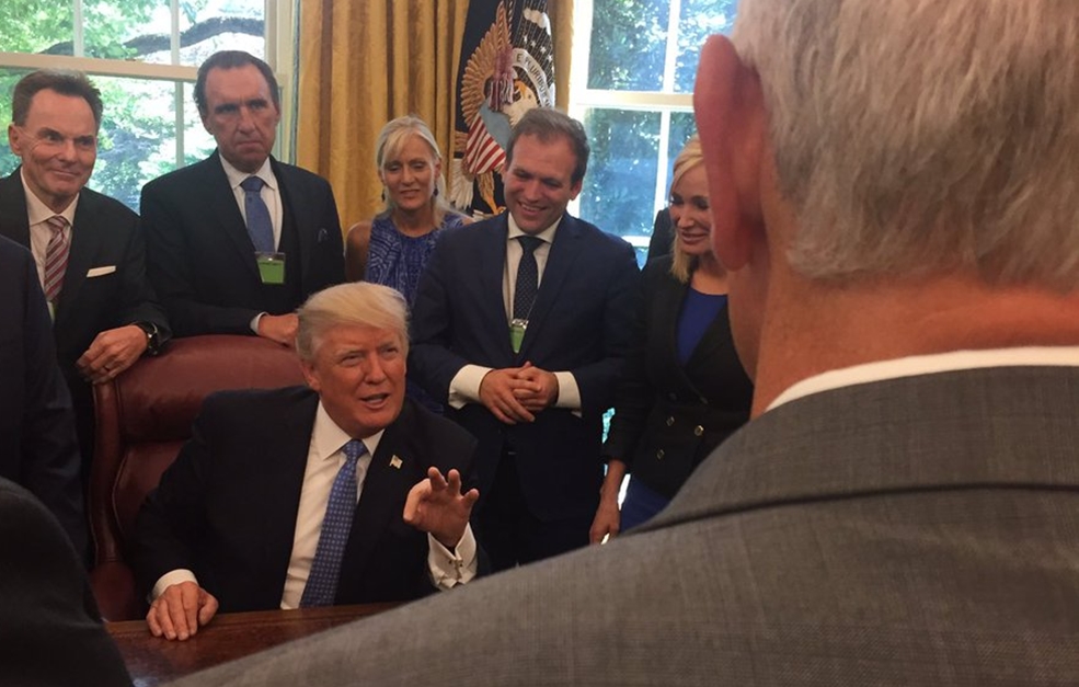 Moore miêu tả: Tổng thống đang “trong tâm trạng tuyệt vời”, cũng như Tony Suarez, phó chủ tịch điều hành Hội nghị Lãnh đạo những người Cơ Đốc giáo gốc La-tinh Quốc gia.