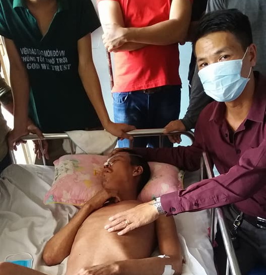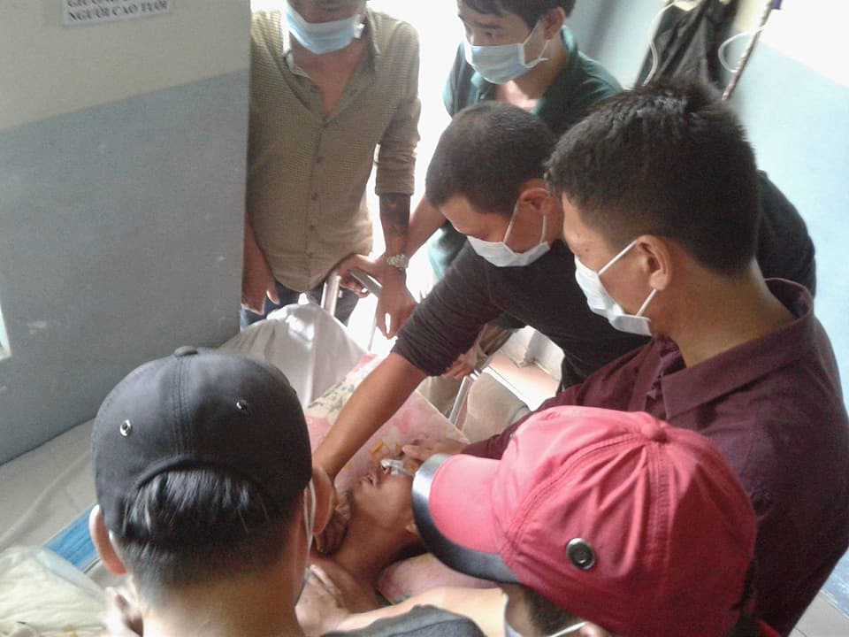Mục sư Lê Minh Phương và các con cái Chúa tại trung tâm giải cứu Gia đình Nissi đến thăm và cầu nguyện cho anh Việt tại bệnh viện Phạm Ngọc Thạch.