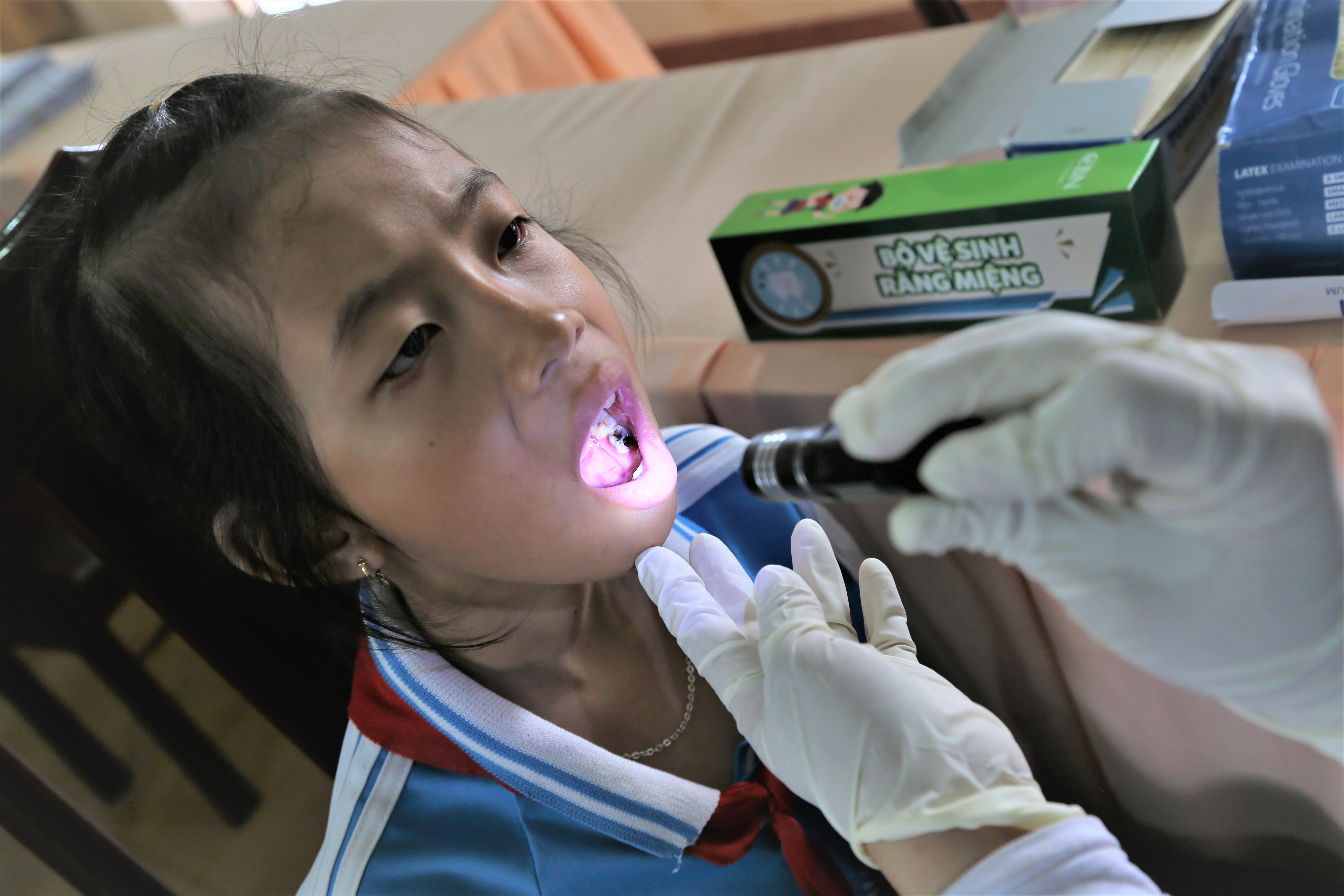 Có 300 học sinh đã thay răng vĩnh viễn được trám phủ thuốc phòng chống sâu răng, và 680 em được nhận quà nha khoa, khám nội tổng quát và cấp phát thuốc miễn phí.
