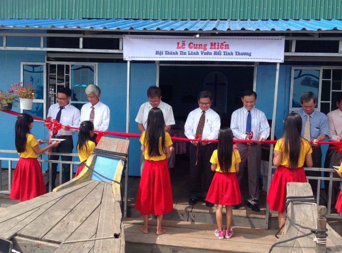 Hội Thánh do một tôi tớ Chúa kêu gọi dâng hiến tài chính. Do lòng cưu mang các em nhỏ các làng bè trên sông bị chết đuối 3-5 em/năm vì cha mẹ bận mưu sinh. Thầy Truyền đạo Nguyễn Minh Dũng đã cầu xin Chúa cho ở lại, xây dựng một căn nhà nổi trên sông làm nơi giữ trẻ và giảng Tin Lành, đồng thời tổ chức các buổi sinh hoạt dạy các em ca hát ngợi khen Chúa… Chưa đầy 1 năm sau Chúa đã đáp lời, nhà bè Vườn Nổi Tình Thương ra đời với không ít thử thách, nhưng cảm ơn Chúa, Ngài đều ở cùng.