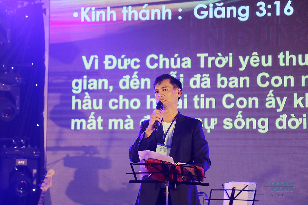 Mục sư Lê Văn Việt – đại diện Ban Tổ chức – cầu nguyện dâng buổi thờ phượng lên Chúa. Ông cũng dâng lời tạ ơn Chúa vì “Buổi chiều mưa lớn, nhưng khi chương trình sắp diễn ra, Chúa đã cho tạnh ráo”.