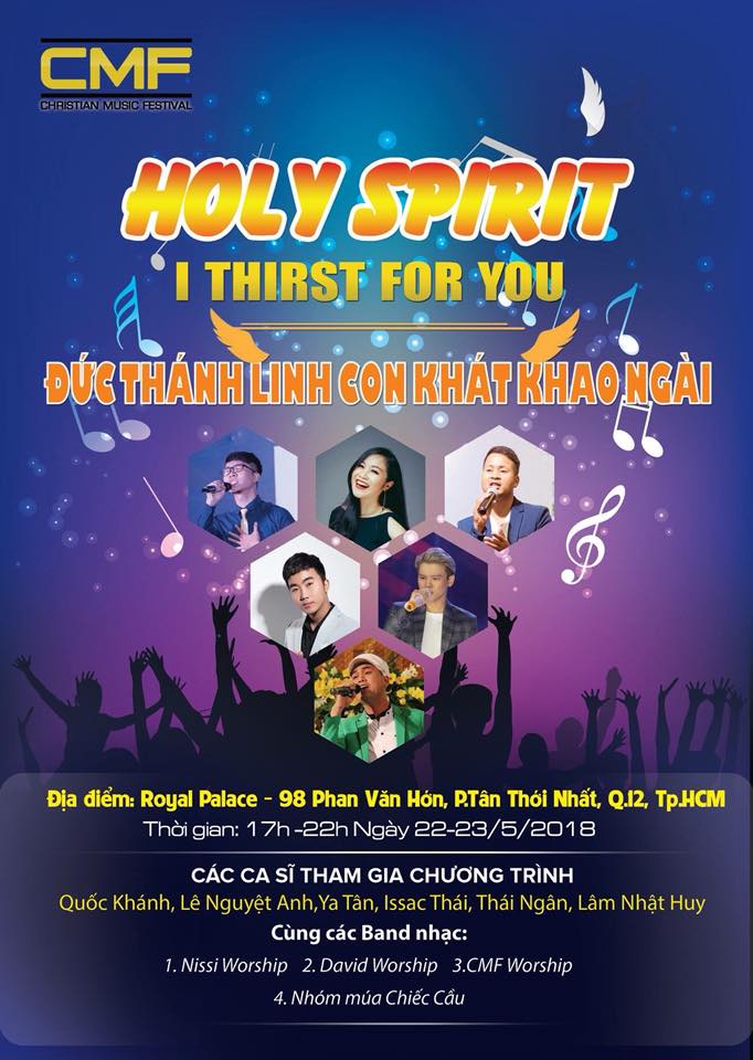 Oneway.vn – Trong 2 ngày 22-23/5/2018, tại Trung tâm Hội nghị tiệc cưới Royal Palace (98 Phan Văn Hớn, P. Tân Thới Nhất, Q.12) sẽ diễn ra Đại hội Âm nhạc Cơ Đốc 2018, với chủ đề “Đức Thánh Linh – con khao khát Ngài!”.