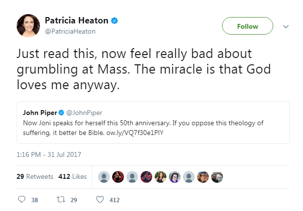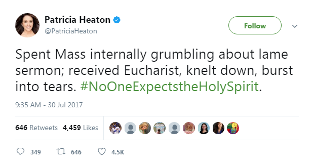 Oneway.vn – Trang Twitter của ngôi sao truyền hình Patricia Heaton luôn sống động với các thông điệp về tình yêu mà cô dành cho Chúa và Hội Thánh.