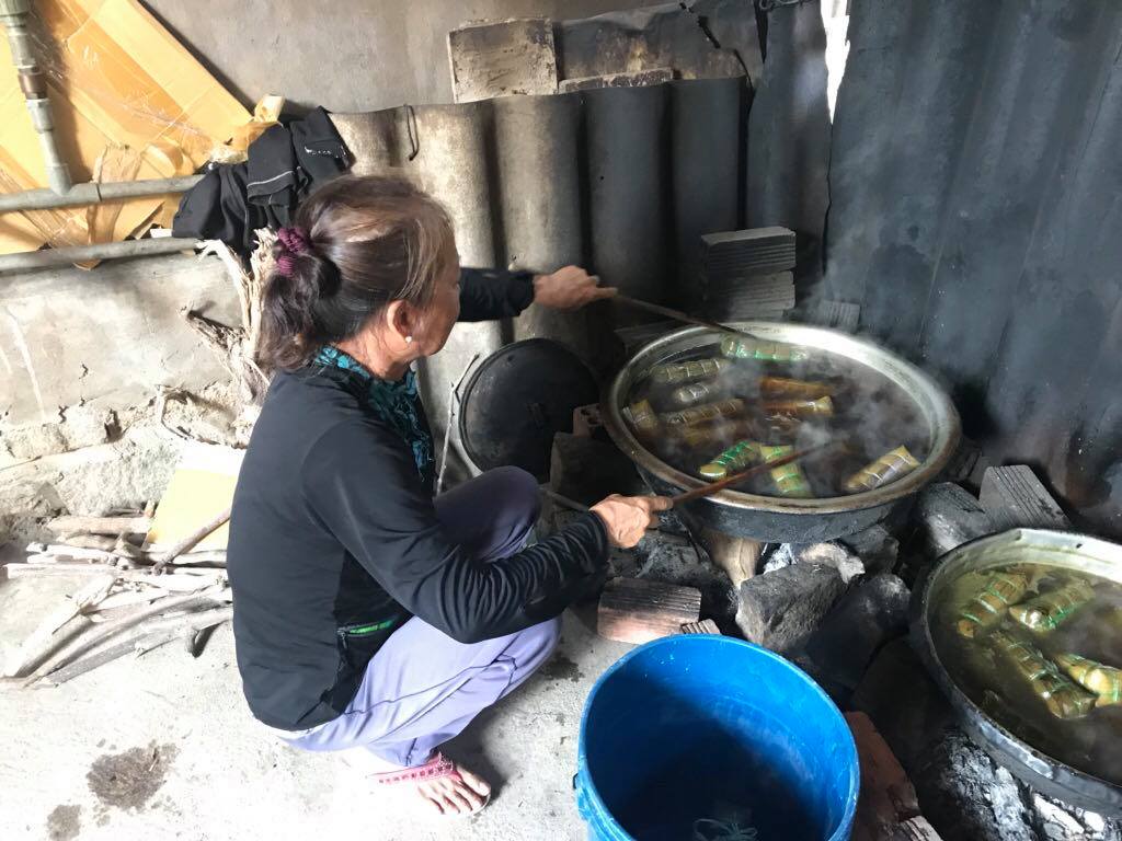 Mấy tháng trước cô Chung còn làm phụ hồ, thu nhập không cao nhưng ổn định; nhưng rồi chủ thầu giảm biên chế, bị mất việc, nên mấy tháng nay mẹ con Yến sống nhờ vào thu nhập từ mâm bánh tét, bánh cam của cô Chung.
