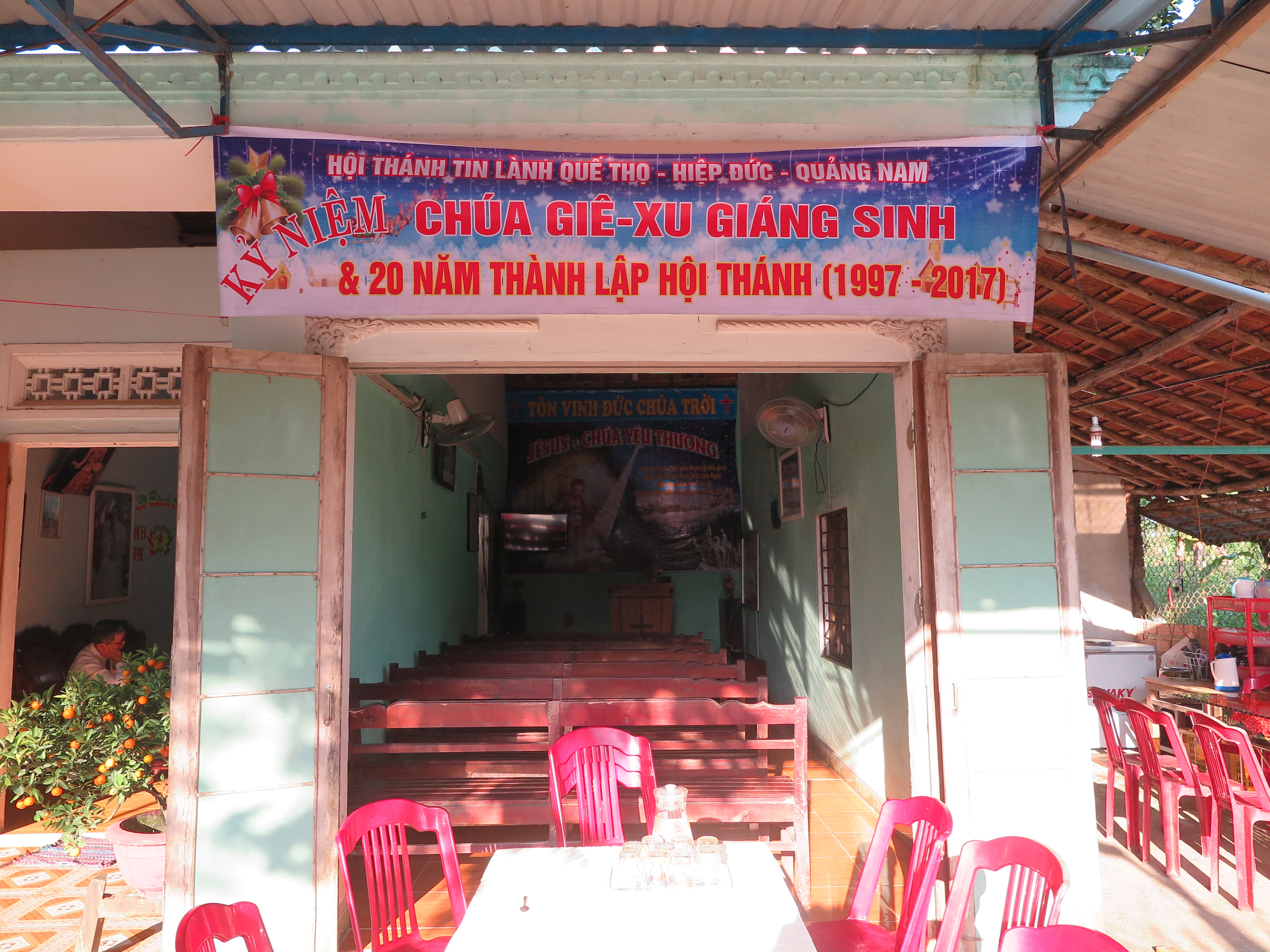 * Được biết Hội Thánh cũng chính là ngôi nhà của ông trước đây, được ông dâng làm nơi nhóm lại, thờ phượng Chúa. Buổi nhóm đầu tiên của Hội Thánh “đó là buổi Kỷ niệm Chúa Jesus Giáng Sinh hồi năm 1997” – ông cho biết. Ban đầu chỉ có… 6 người: 2 vợ chồng và 4 đứa con! Sau nhiều năm, trải qua nhiều khó khăn, thử thách, giờ Hội Thánh hiện nhóm lại hàng tuần với số lượng trên dưới 30 người.