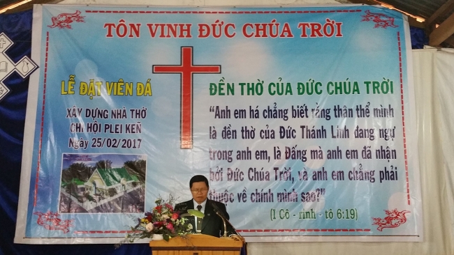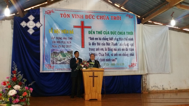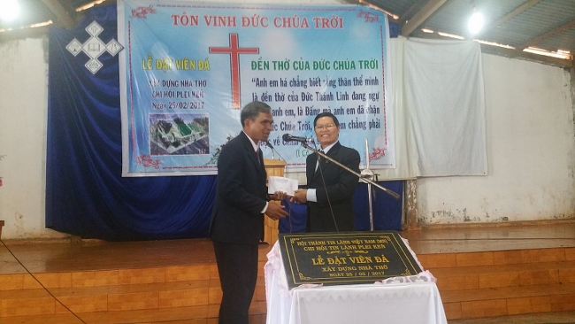 Ngày 25/2/2017, tại Chi Hội Plei Kenh, xã Ia Le, huyện Chư Pưh, tỉnh Gia Lai vui mừng tổ chức Lễ Đặt viên đá xây dựng nhà thờ Tin Lành Plei Kenh.