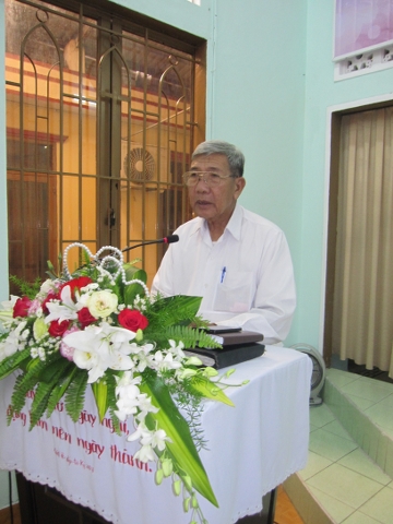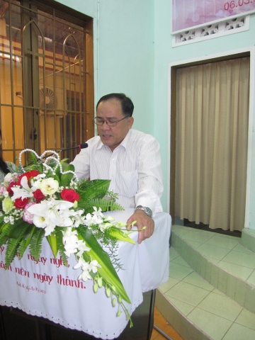 Mục sư Trần Văn Hiền – Trưởng Ban Đại diện kêu gọi: Quí đầy tớ Chúa khích lệ mỗi tín hữu có trách nhiệm dâng hiến rời rộng cho việc xây dựng nhà thờ của Viện Thánh Kinh Thần Học.