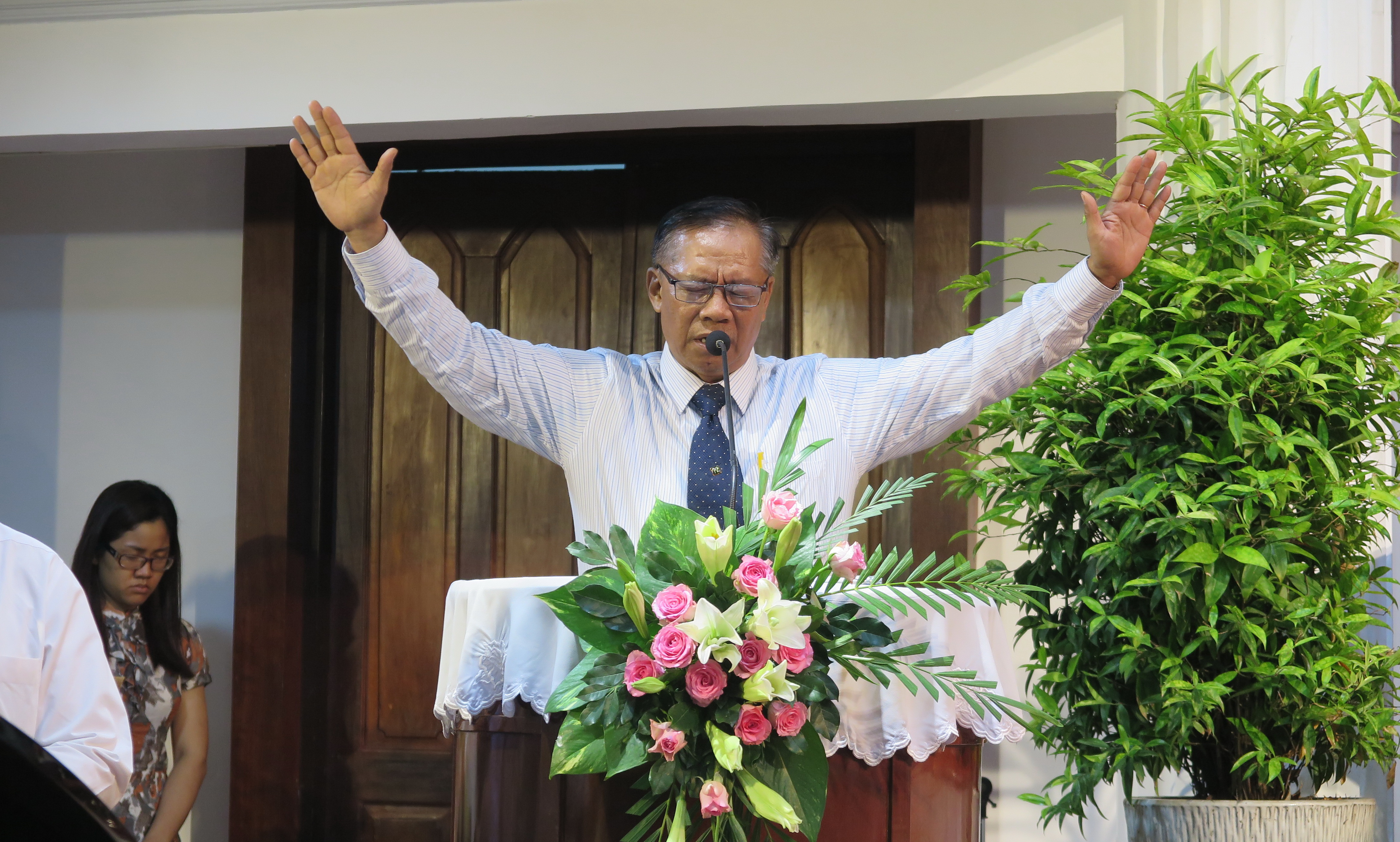 Mục sư Nguyễn Thế Hiển – Quản nhiệm HTTL Sài Gòn cầu nguyện và chào mừng