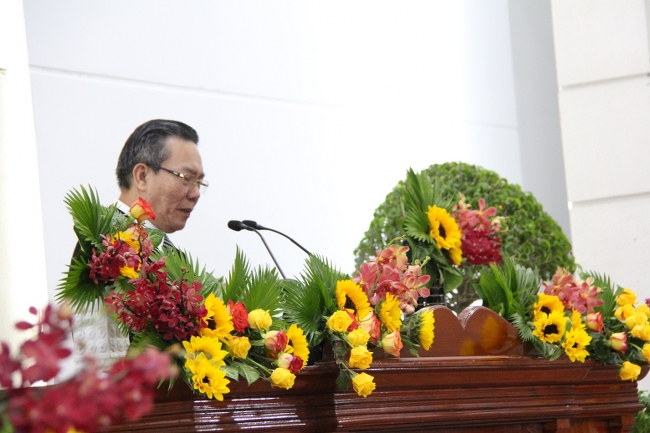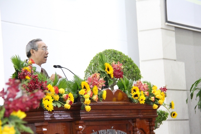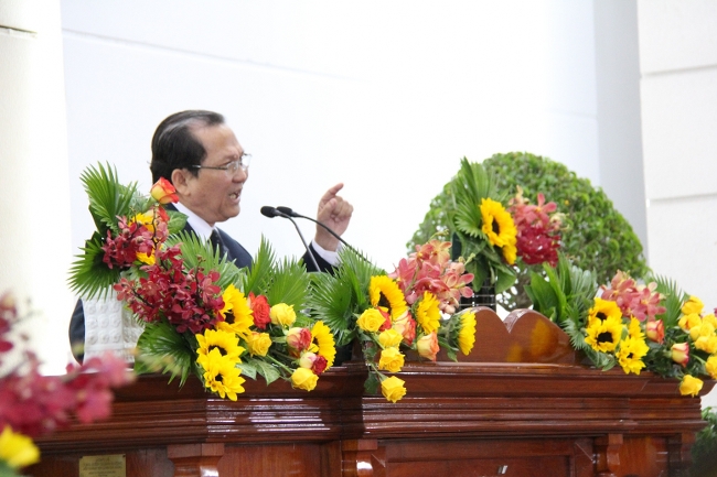 Mục sư Hội trưởng Phan Vĩnh Cự, diễn giả Hội đồng