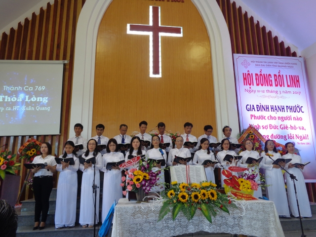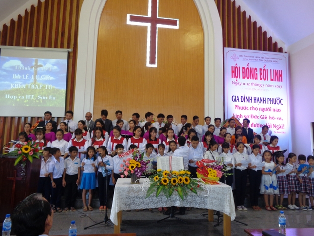 Hội đồng Bồi linh các Hội Thánh tỉnh Quảng Ngãi khai mạc vào lúc 14 giờ ngày 11/3/2017 tại nhà thờ Tin Lành Bình Sơn. Chủ đề của Hội đồng: Gia Đình Phước Hạnh với sự hiện diện khoản 1.200 tín hữu trong toàn tỉnh.
