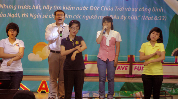 Các bạn khiếm thính khiếm thị ca ngợi Chúa