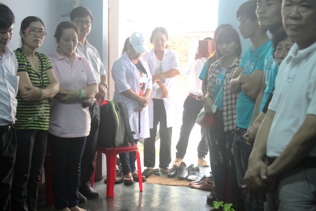 Đoàn chia làm các tổ để làm việc như: Tiếp nhận phiếu mời khám bệnh, điều dưỡng đo huyết áp, bác sỹ khám bệnh, dược sỹ phát thuốc và tặng quà cho đồng bào. Các hoạt động diễn ra trong trật tự và rất nề nếp, từng bộ phận có người hướng dẫn chu đáo. Trong khi đồng bào chờ đến lượt khám bệnh cũng có thể đến cắt tóc miễn phí do các bạn tình nguyện viên của Salon tóc Khánh Hưng tại TP Tam Kỳ thực hiện. Các em học sinh chăm chú nhìn các bạn của mình được cắt tóc và chờ đợi đến lượt mình trong sự thích thú.