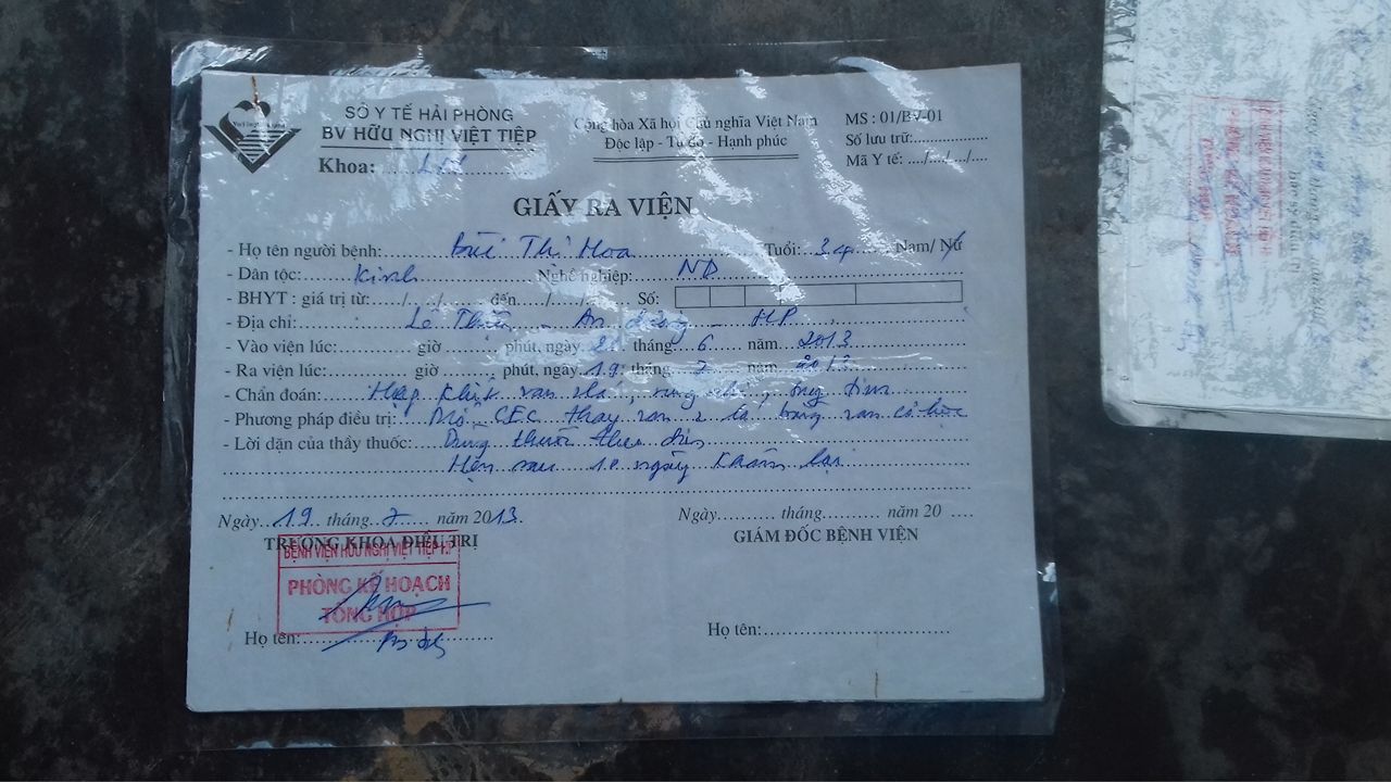 Một tờ giấy ra viện của cô Hoa.