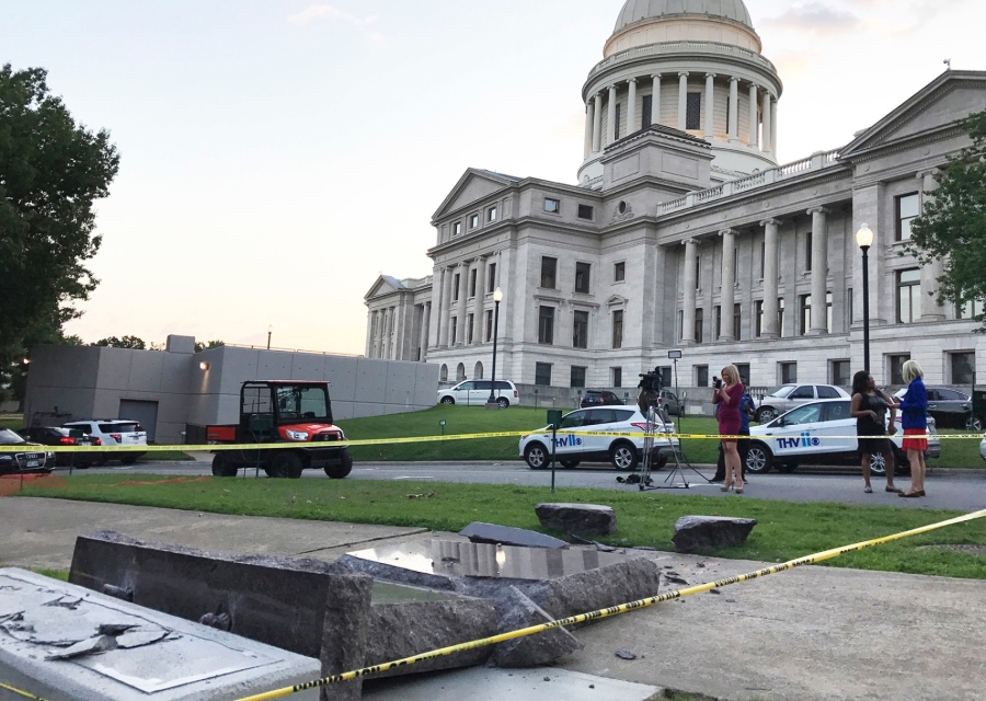 Xuất phát từ việc một video clip được đăng tải, phát tán rộng rãi những hình ảnh hết sức xấu xí trên mạng xã hội 2 tuần trước ở Little Rock, bang Arkansas. Một người đàn ông xưng tên là Michael Tate Reed đã lái xe tông thẳng vào tấm bia đá ghi 10 điều răn – Ten Commandments Statue – nhằm phá hủy nó.