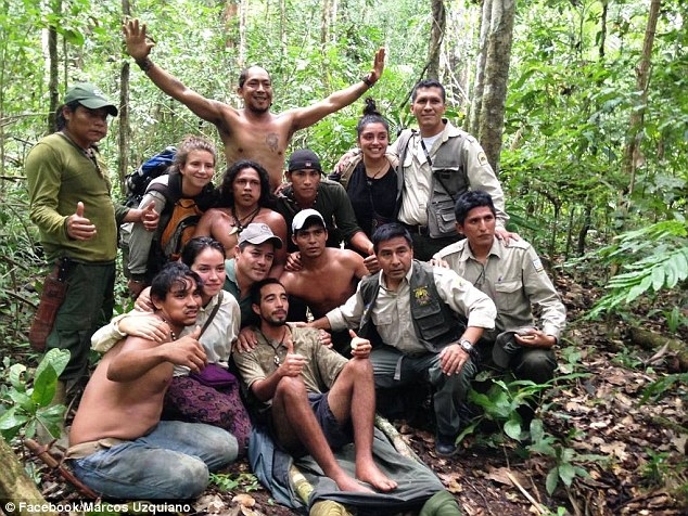 - Các thành viên vườn quốc gia Madidi chụp cùng Acuña sau khi giải cứu anh.