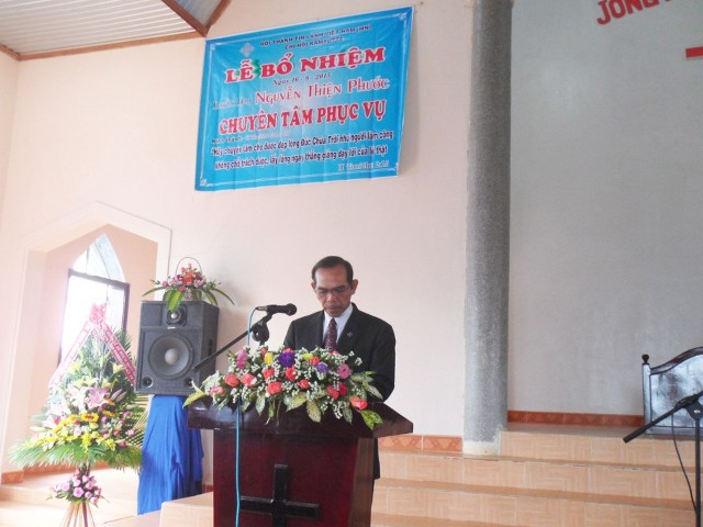 Mục sư Bùi Phụng – UV TLH – giảng Lời Chúa qua đề tài: “Chuyên tâm phục vụ”, câu gốc trong II Ti-mô-thê 2:15 để nhắc nhở và khích lệ Tân Quản nhiệm và Hội Thánh. Mục sư Kon Sa Ha Hăck – UV TLH – đọc quyết định bổ nhiệm, trao Giáo Vụ lệnh, Ấn tín và cầu nguyện cho Tân Quản nhiệm. Truyền đạo Nguyễn Thiện Phước – Tân Quản nhiệm – đã có lời bày tỏ tâm chí với Hội Thánh.