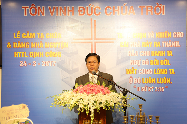 Mục sư Hoàng Đức Luân – Tổng Thủ quỹ Tổng hội thay mặt Ban Trị sự tổng hội chúc mừng Hội Thánh