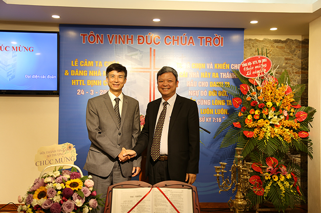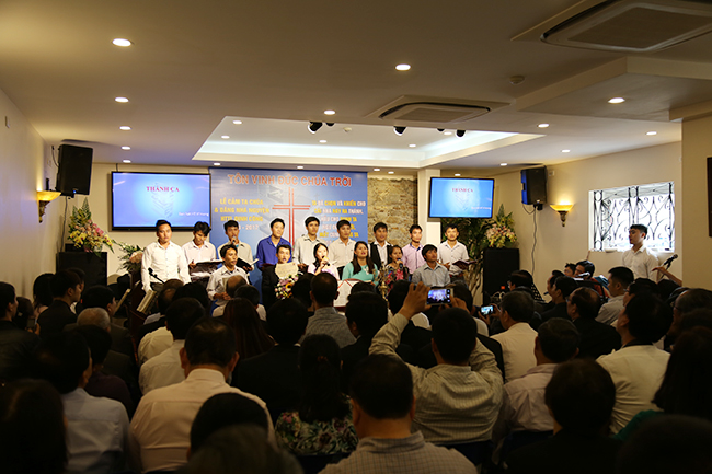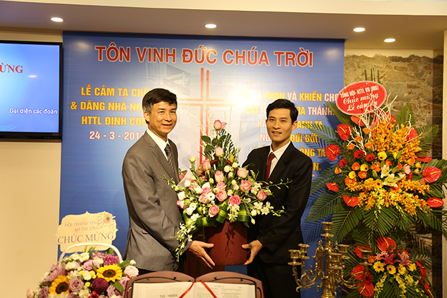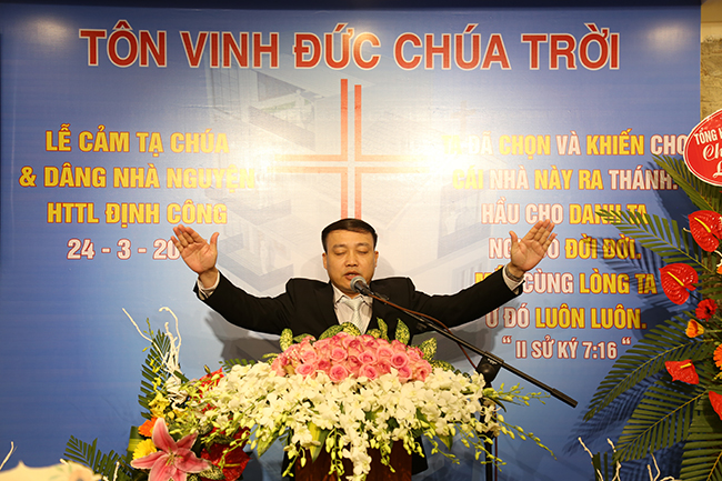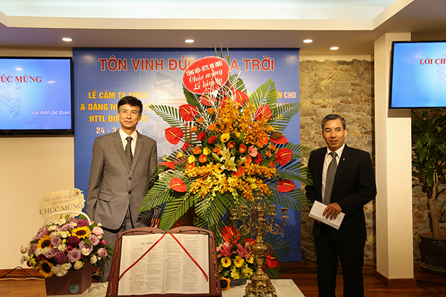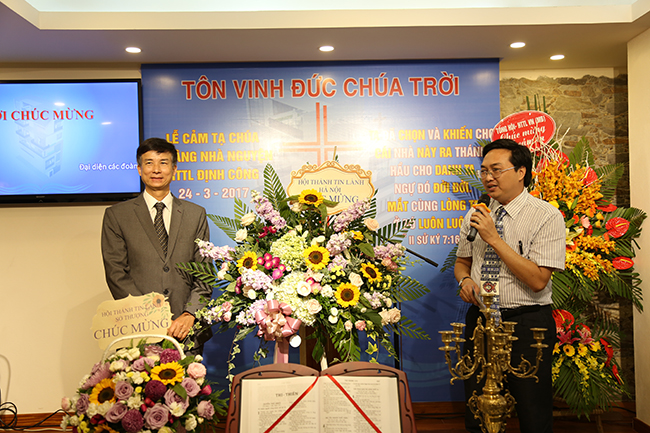 Thư kí Lâm Hoàng Vũ đại diện cho Hội Thánh Hà Nội chúc mừng