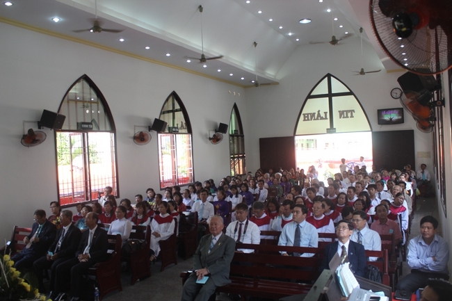 Sau khi Mục sư Cao Văn Hoàng cầu nguyện khai lễ, xin Chúa hướng dẫn và ban ơn trên buổi lễ; Hội Thánh cùng ca ngợi Chúa qua các bài Thánh ca. Mục sư Dương Hữu Thắng – Quản nhiệm Hội Thánh – có lời chào mừng. Ban hát các Hội Thánh góp phần tôn vinh Chúa trong chương trình.