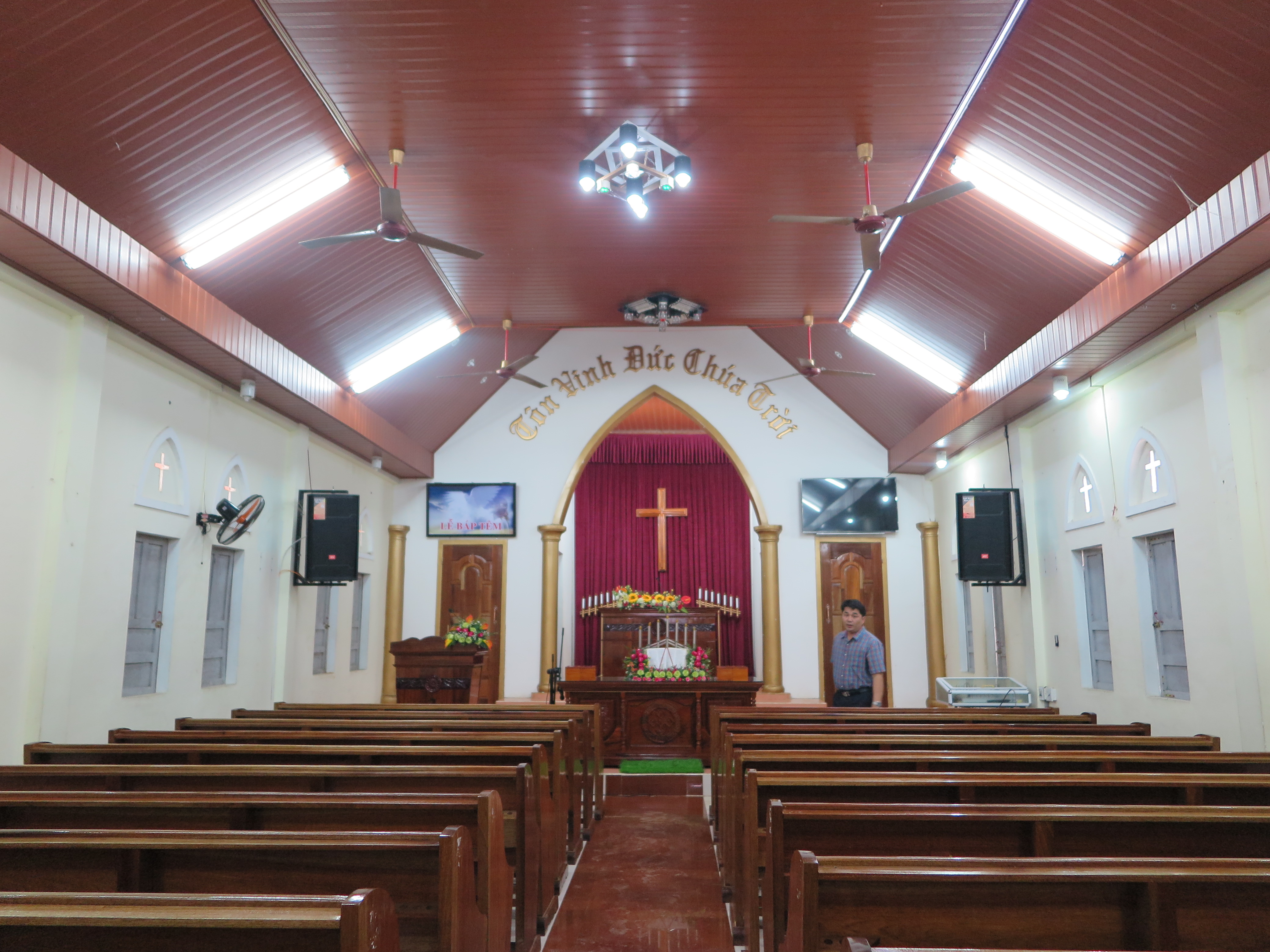 Bên trong nhà thờ Tin Lành Tiên Phước.