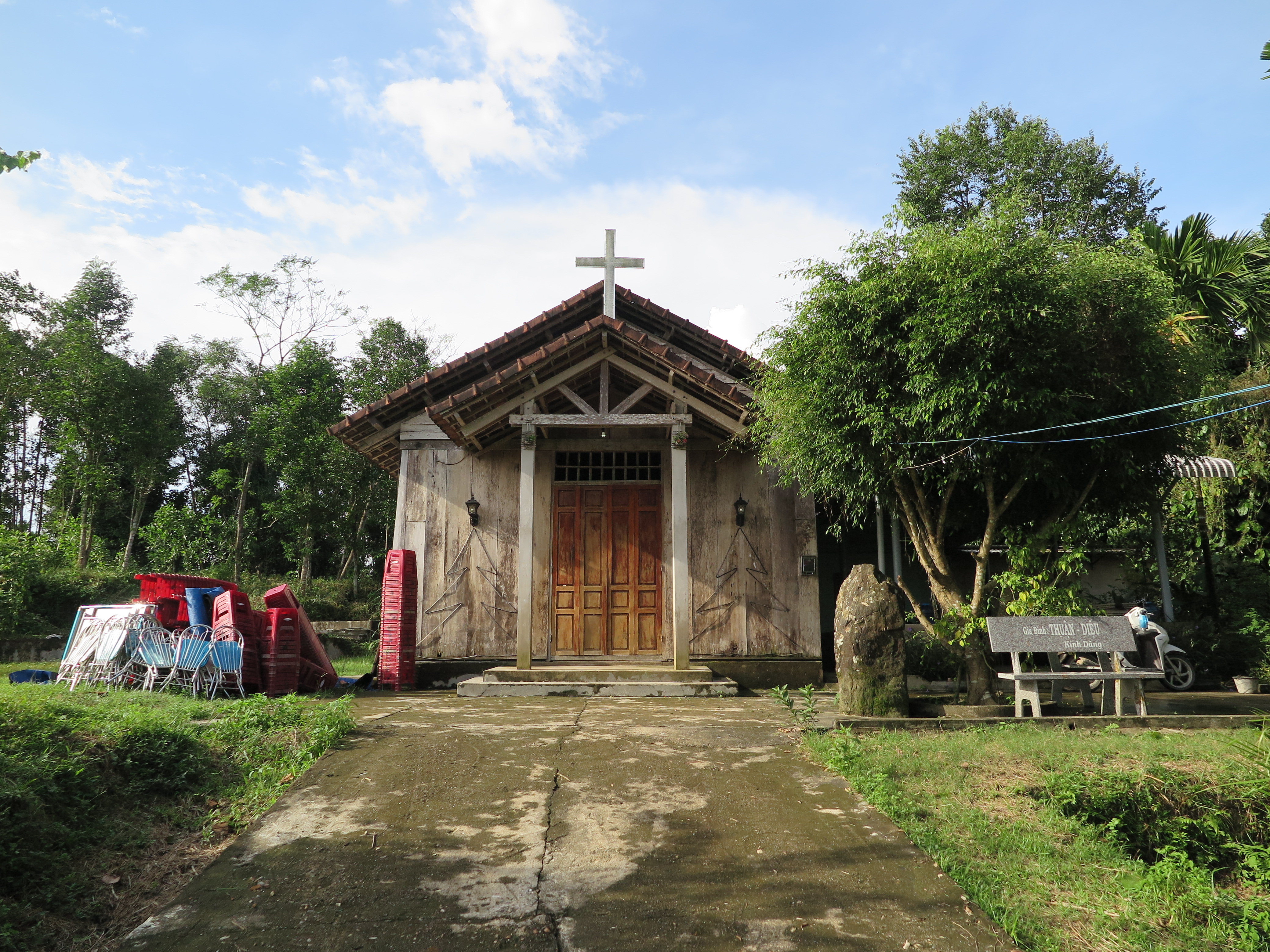 Ngôi nhà thờ dựng bằng gỗ đơn sơ nhưng đẹp đẽ.