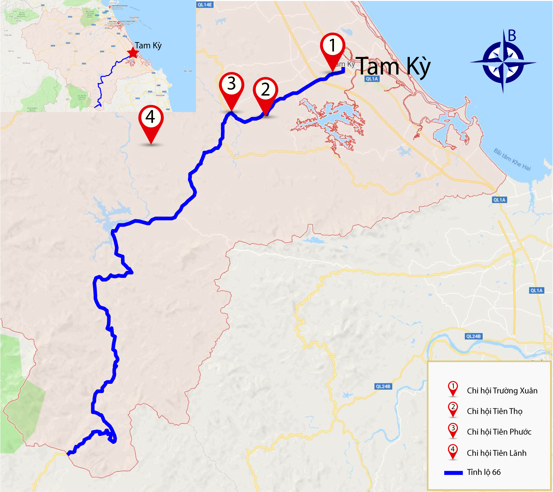 Tỉnh lộ 616 và các Hội Thánh nằm dọc tuyến đường này. Đồ họa: Tuấn Đạt.