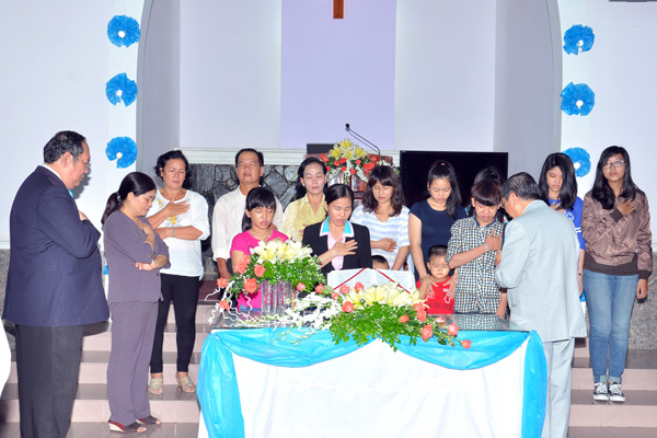 Sau lời kêu gọi của MSNC Đinh Thuận – Quản nhiệm Hội Thánh, cảm tạ Chúa đã cho 14 thân hữu bước lên cầu nguyện tiếp nhận Chúa.