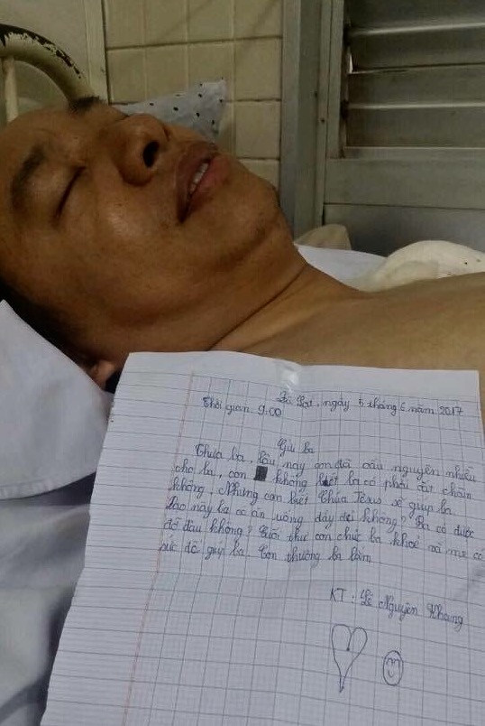 Thưa ba, lâu nay con đã cầu nguyện nhiều cho ba, con không biết ba có phải cắt chân không. Nhưng con biết Chúa Jesus sẽ giúp ba.