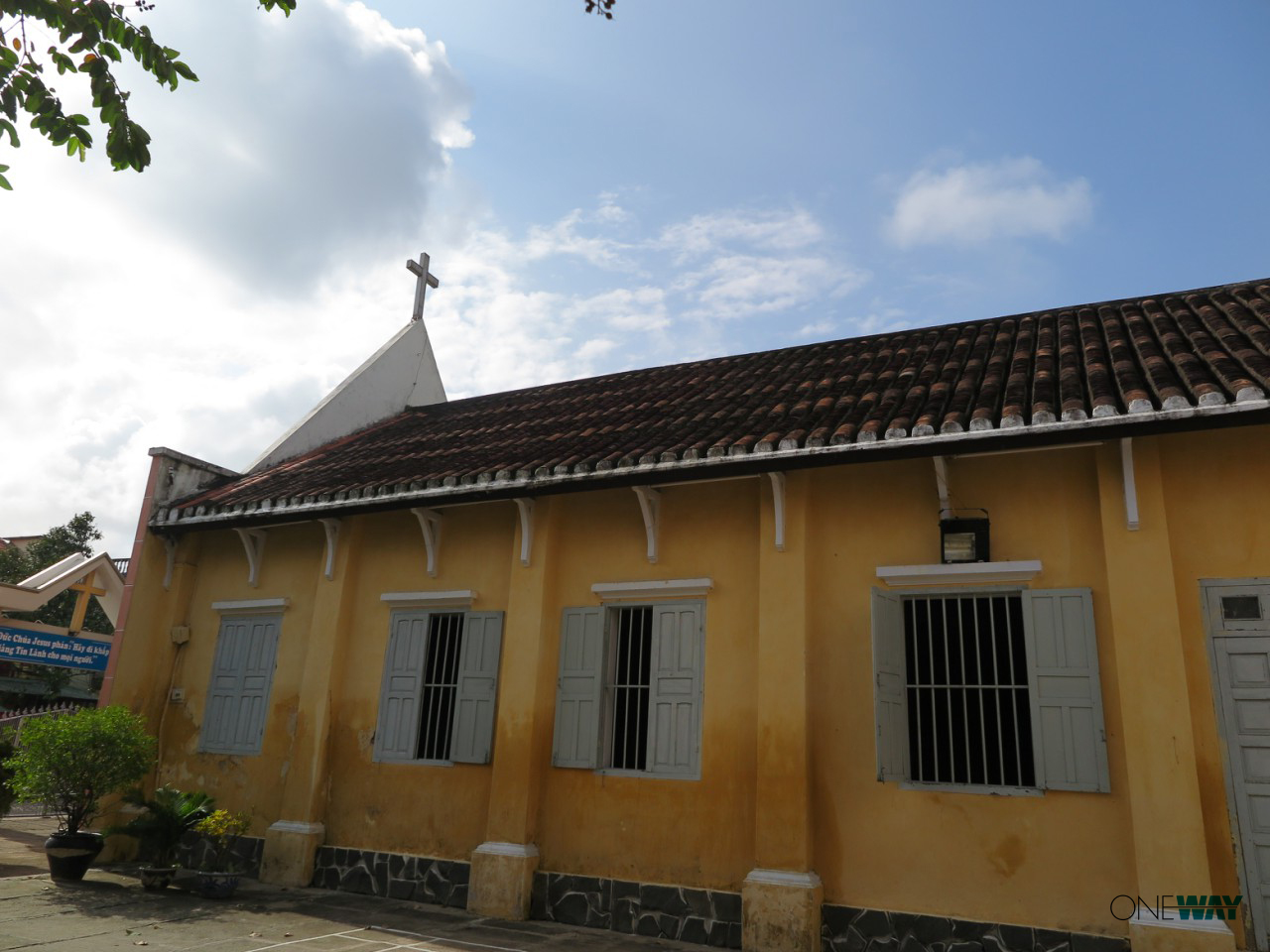 Bên ngoài, nhà thờ Tin Lành Hội An mang nét cổ kính với mái ngói xưa