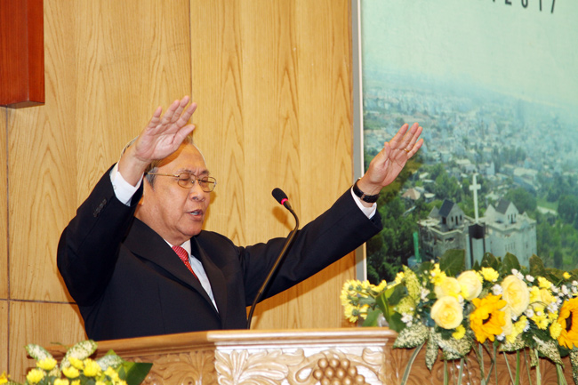 Mục sư Phan Văn Cử – Tổng Thủ quỹ TLH – cầu nguyện đáp ứng Lời Chúa