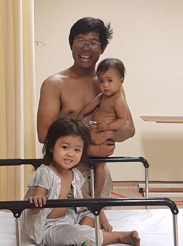 Chồng và 2 con của chị Bích Đan sau khi được chăm sóc tại bệnh viện.