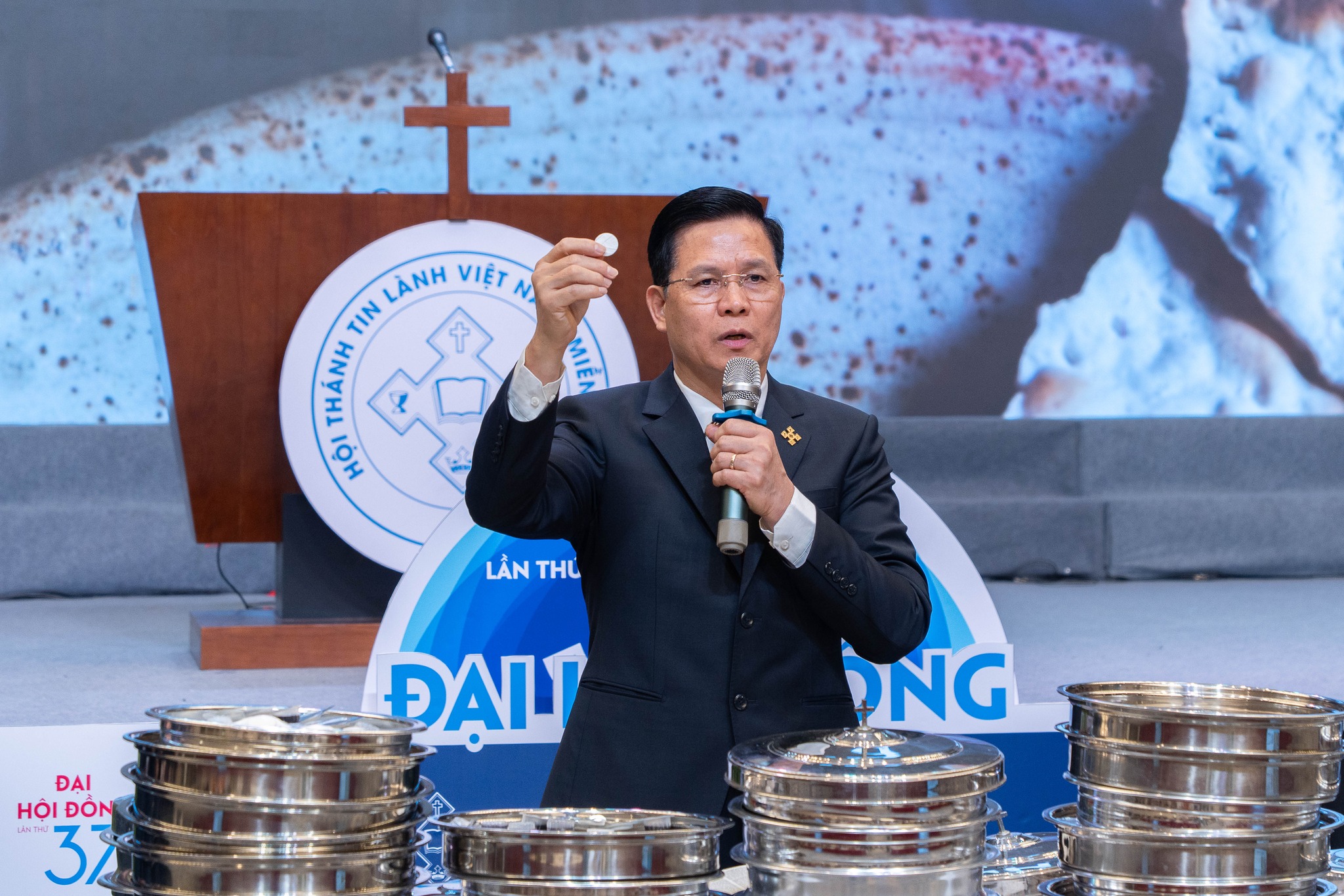 Hơn 800 đại biểu cùng dự Tiệc Thánh trong sự suy niệm, nhắc mỗi người nhớ về sự hy sinh của Chúa Jêsus, sống với lòng biết ơn và giữ sự hiệp một trong thân thể Ngài.
