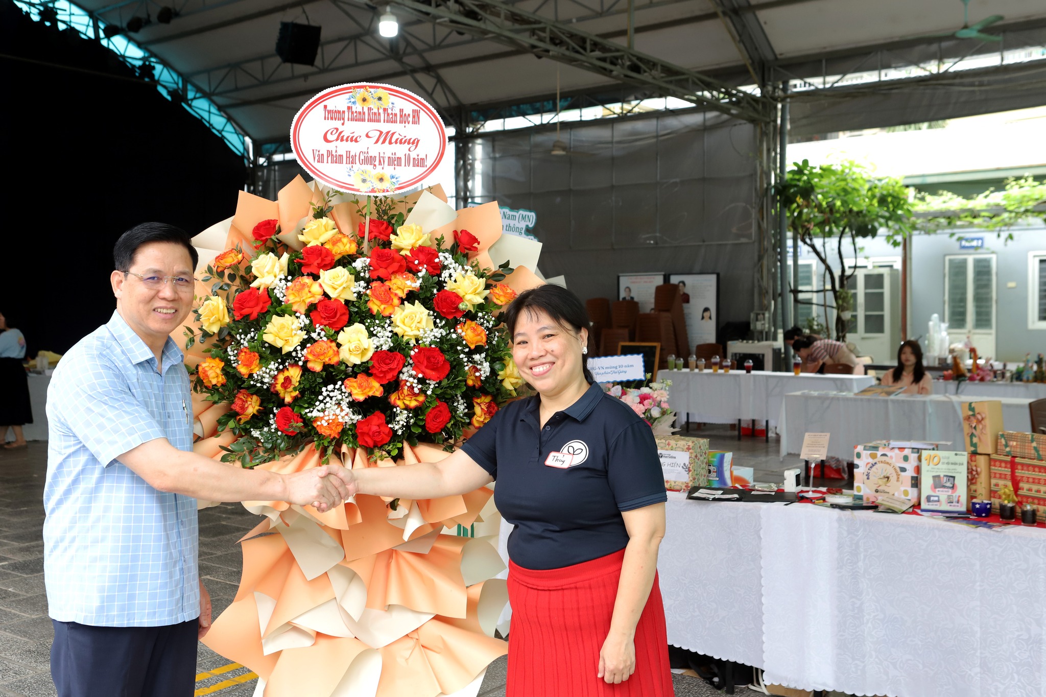 Mục sư Nguyễn Hữu Mạc, Hiệu trưởng Trường Thánh Kinh Thần học Hà Nội, chúc mừng chị Trần Thị Xuân Thủy – Giám đốc Văn phẩm Hạt Giống.